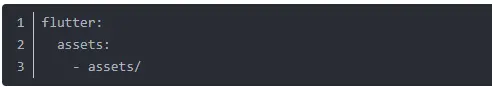 一般导入的资源都要在pubspec.yaml文件中按照下面的方式,一个一个进行声明,应用程序才能获取到。