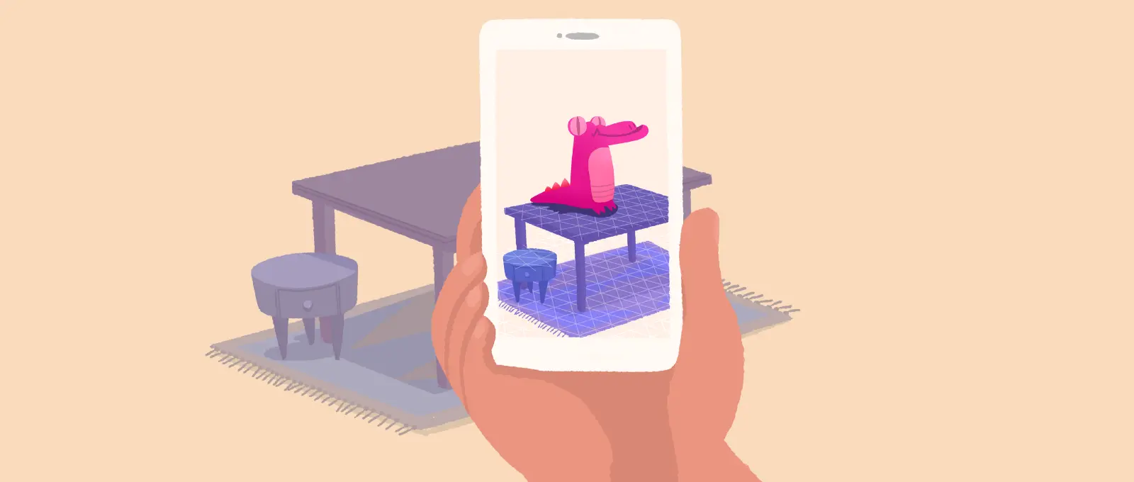package com.ayusch.augmentedimages;import android.graphics.Bitmap;import android.graphics.BitmapFactory;import android.net.Uri;import android.os.Build;import android.support.annotation.RequiresApi;import android.support.v7.app.AppCompatActivity;import android.os.Bundle;import android.util.Log;import android.widget.Toast;import com.google.ar.core.Anchor;import com.google.ar.core.AugmentedImage;import com.google.ar.core.AugmentedImageDatabase;import com.google.ar.core.Config;import com.google.ar.core.Frame;import com.google.ar.core.Session;import com.google.ar.core.TrackingState;import com.google.ar.sceneform.AnchorNode;import com.google.ar.sceneform.FrameTime;import com.google.ar.sceneform.rendering.ModelRenderable;import com.google.ar.sceneform.rendering.Renderable;import com.google.ar.sceneform.ux.ArFragment;import com.google.ar.sceneform.ux.TransformableNode;import java.io.IOException;import java.io.InputStream;import java.util.Collection;public class MainActivity extends AppCompatActivity { ArFragment arFragment; boolean shouldAddModel = true;@Override protected void onCreate(Bundle savedInstanceState) { super.onCreate(savedInstanceState); setContentView(R.layout.activity_main); arFragment = (CustomArFragment) getSupportFragmentManager().findFragmentById(R.id.sceneform_fragment); arFragment.getPlaneDiscoveryController().hide(); arFragment.getArSceneView().getScene().addOnUpdateListener(this::onUpdateFrame); }@RequiresApi(api = Build.VERSION_CODES.N) private void placeObject(ArFragment arFragment, Anchor anchor, Uri uri) { ModelRenderable.builder() .setSource(arFragment.getContext(), uri) .build() .thenAccept(modelRenderable -> addNodeToScene(arFragment, anchor, modelRenderable)) .exceptionally(throwable -> { Toast.makeText(arFragment.getContext(), "Error:" + throwable.getMessage(), Toast.LENGTH_LONG).show(); return null; }); }@RequiresApi(api = Build.VERSION_CODES.N) private void onUpdateFrame(FrameTime frameTime) { Frame frame = arFragment.getArSceneView().getArFrame();Collection<AugmentedImage> augmentedImages = frame.getUpdatedTrackables(AugmentedImage.class); for (AugmentedImage augmentedImage : augmentedImages) { if (augmentedImage.getTrackingState() == TrackingState.TRACKING) { if (augmentedImage.getName().equals("tiger") && shouldAddModel) { placeObject(arFragment, augmentedImage.createAnchor(augmentedImage.getCenterPose()), Uri.parse("Mesh_BengalTiger.sfb")); shouldAddModel = false; } } } }public boolean setupAugmentedImagesDb(Config config, Session session) { AugmentedImageDatabase augmentedImageDatabase; Bitmap bitmap = loadAugmentedImage(); if (bitmap == null) { return false; }augmentedImageDatabase = new AugmentedImageDatabase(session); augmentedImageDatabase.addImage("tiger", bitmap); config.setAugmentedImageDatabase(augmentedImageDatabase); return true; }private Bitmap loadAugmentedImage() { try (InputStream is = getAssets().open("blanket.jpeg")) { return BitmapFactory.decodeStream(is); } catch (IOException e) { Log.e("ImageLoad", "IO Exception", e); }return null; }private void addNodeToScene(ArFragment arFragment, Anchor anchor, Renderable renderable) { AnchorNode anchorNode = new AnchorNode(anchor); TransformableNode node = new TransformableNode(arFragment.getTransformationSystem()); node.setRenderable(renderable); node.setParent(anchorNode); arFragment.getArSceneView().getScene().addChild(anchorNode); node.select(); }}Now run your app. You should see a screen as shown below. Move around your phone a bit over the reference object. ARCore will detect the feature points and as soon as it detects the reference image in the real world, it will add your 3D model onto it.