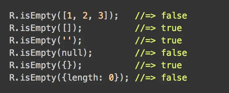 Ramda’s isEmpty function works with strings, arrays, objects.