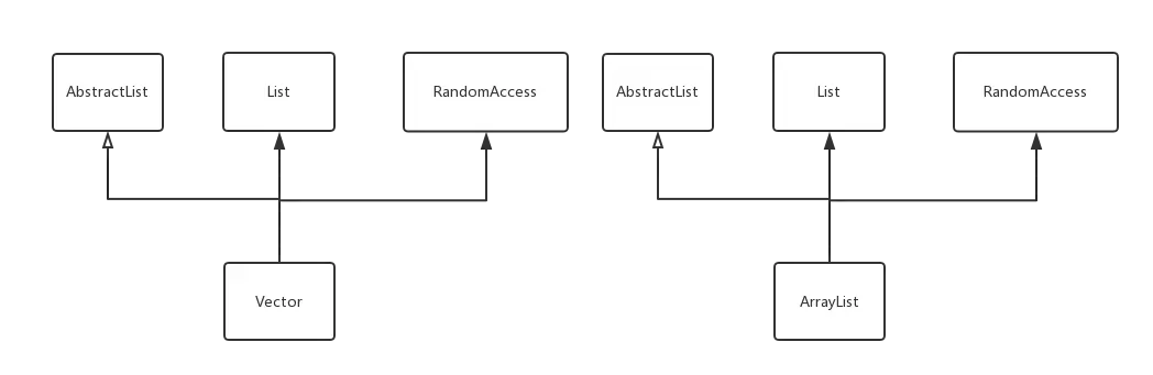 可以看到,Vector和ArrayList都实现了List和RandomAccess接口,都继承了AbstractList。通过他们的继承结构,大致可以猜测他们在元素的处理上存在很多相同的地方。