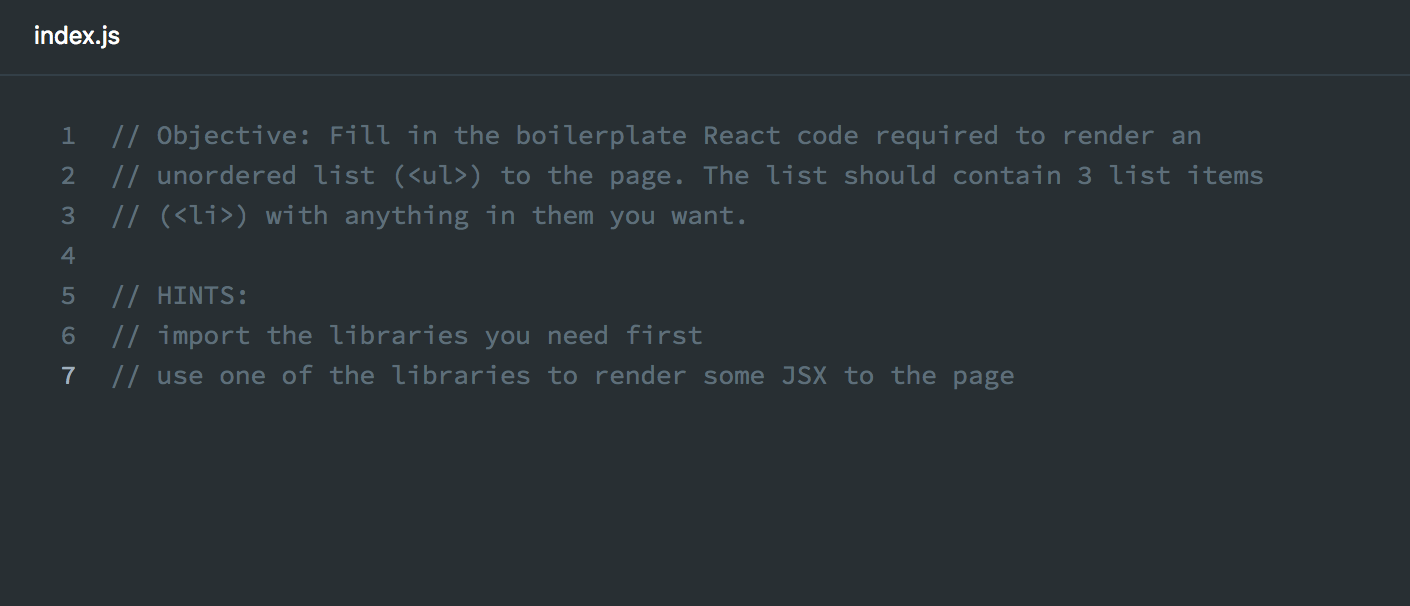 // Hm, not sure which element I should render here... ReactDOM.render( <h1>Hello world!</h1> <p>I'm a paragraph</p>, document.getElementById("root"))