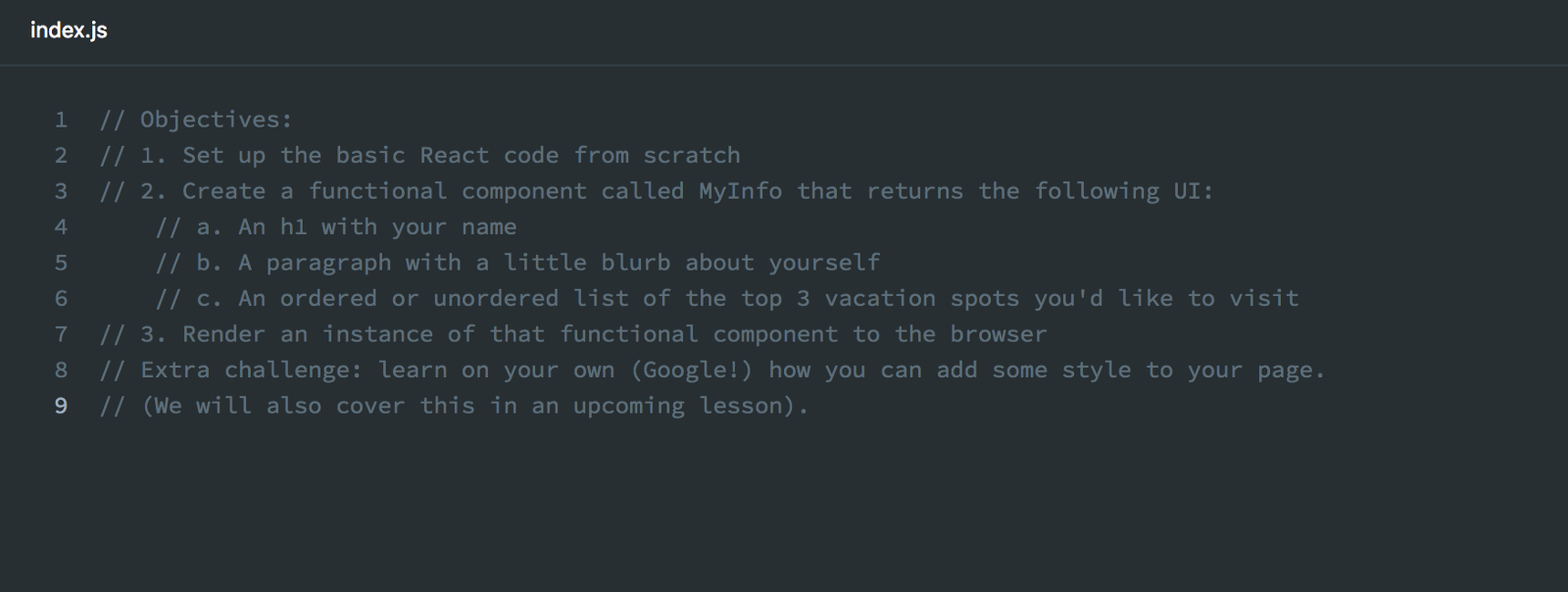 ReactDOM.render( <MyInfo />, document.getElementById("root"))