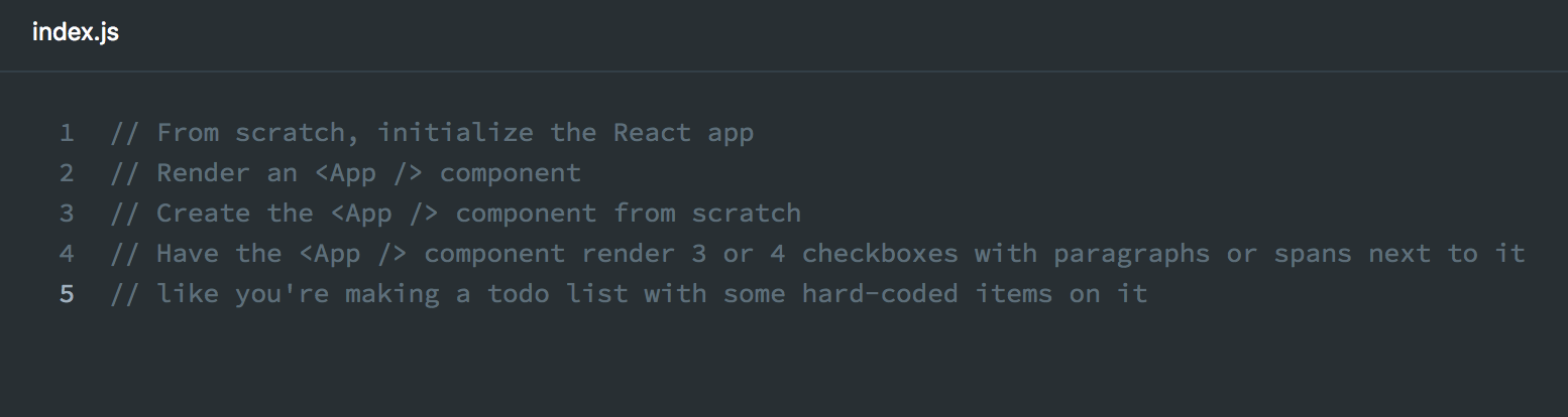 ReactDOM.render(<h1>Hello world!</h1>, document.getElementById("root"))