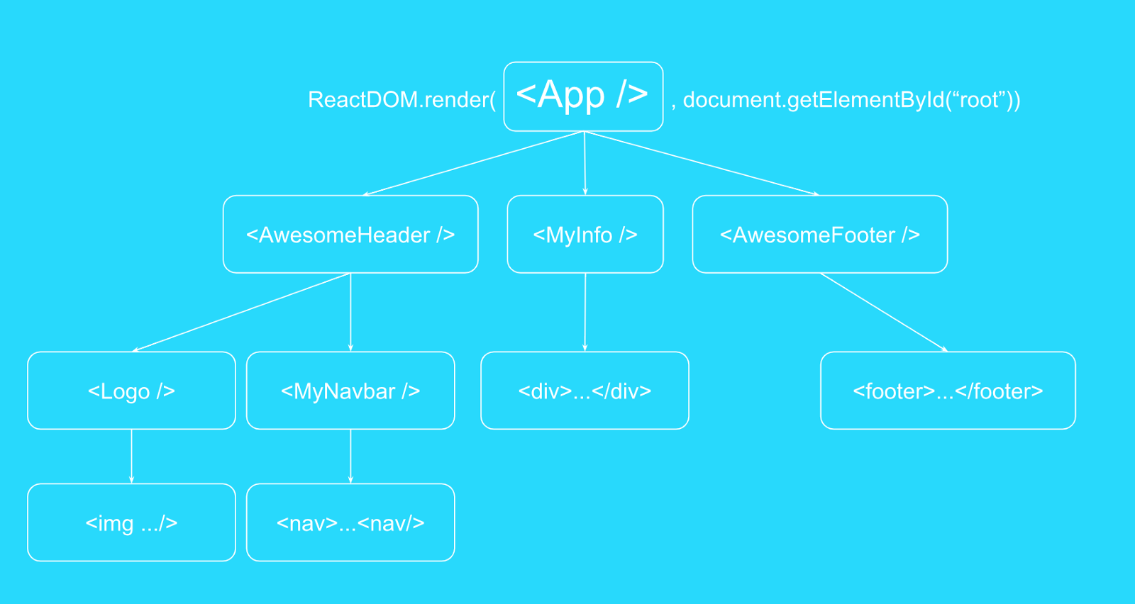 function App() { return ( <div> <Header /> <MainContent /> <Footer /> </div> )}