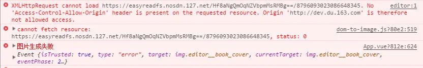 要将一个DOM转化为图片,社区里已经有不少很成熟的开源库可以使用,比如我使用的是dom-to-image,需要注意的就是一个问题:DOM转化为图片,基本都利用到了canvas的toDataUrl()功能将图片转化转化为base64编码的URL,这里面有一个安全策略,就是如果canvas中绘制的DOM结构中有图片,而该图片与当前页面的域名不一样(这在我们的开发场景中很常见),出于安全策略的限制,此时浏览器是不允许调用canvas的toDataUrl()方法的,而我们的书籍卡片中必定会有书籍的封面,该封面的域名是我们的CDN域名,所以转换成图片被限制了。