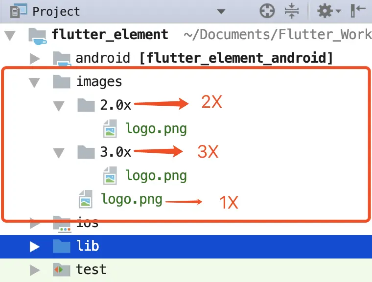 加载一个本地资源图片,和 Android 一样,有多种分辨率的图片可供选择,但是沿袭的是 iOS 的图片风格,分为 1x,2x,3x,具体做法是在项目的根目录下创建两个文件夹,如下图所示: