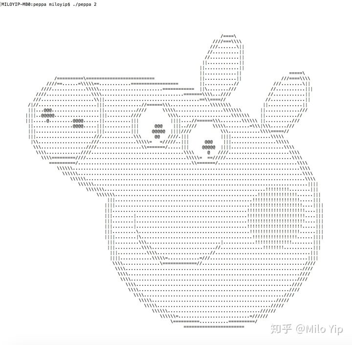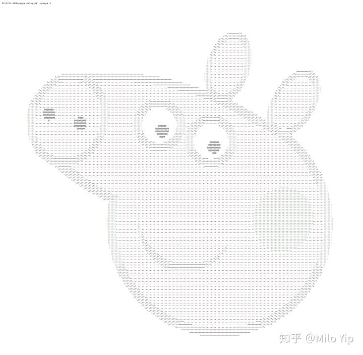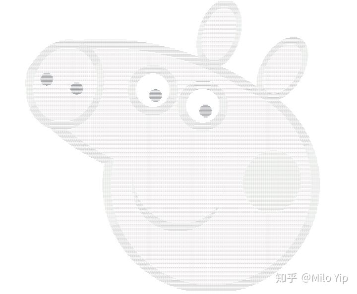 然后,我们就可以画多个圆形,把它们适当地旋转和缩放,用构造实体几何比它们组合起来,那么用19行代码就可以画出小猪佩奇了:
