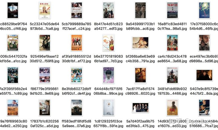 对scrapy自带的图片爬虫进行了简单的重写,下载过程中会对保存图片生成一个唯一的hash id最为图片名字, 这样可以避免图片重复下载,因为scrapy自带的多线程下载机制,下载过程可能会把带宽占满。因为是抓取一个页面所有图片然后通过图片尺寸进行筛选,所以有些图片不一定是海报图片。
