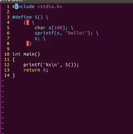 下图的代码在linux+gcc下是可以的,宏S直接在main函数内展开,其内部定义的变量s也是main函数的局部变量,可直接在main函数内打印其值,不属于"返回局部变量的指针"。