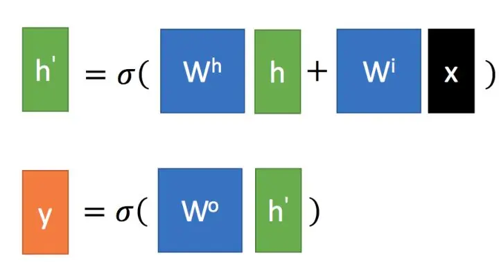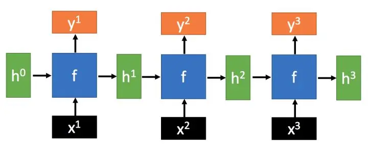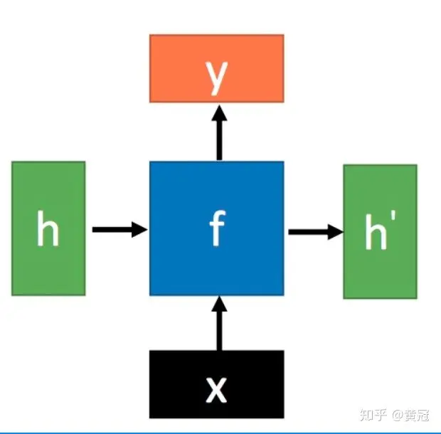 - f表示一个函数(或者说一个黑盒子),表示可以由x和h得到y,即y=f(h,x)