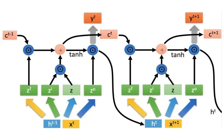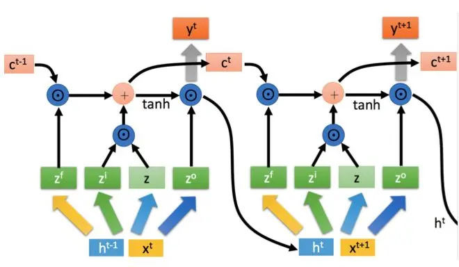 好,lstm的基本计算单元讲完了,那么就可以如下图一样,把每一个time_stamp的计算单元串联起来: