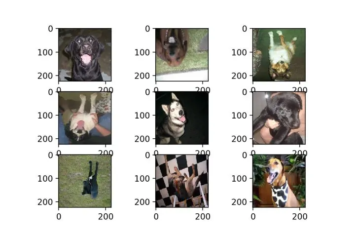 我们测试选用的是kaggle dogs vs cats redux 猫狗大战的数据集,随机选取了9张狗狗的照片,这9张均被resize成224×224的尺寸,如图1: