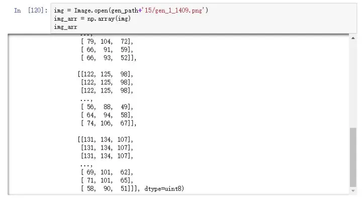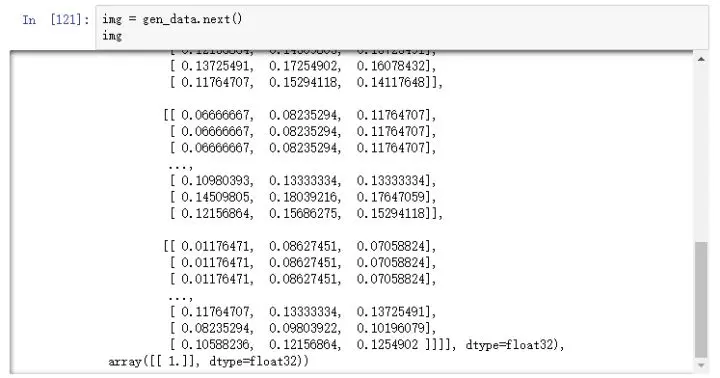 图片经过rescale之后,保存到本地的图片用肉眼看是没有任何区别的,如果我们在内存中直接打印图片的数值,可以看到以下结果: