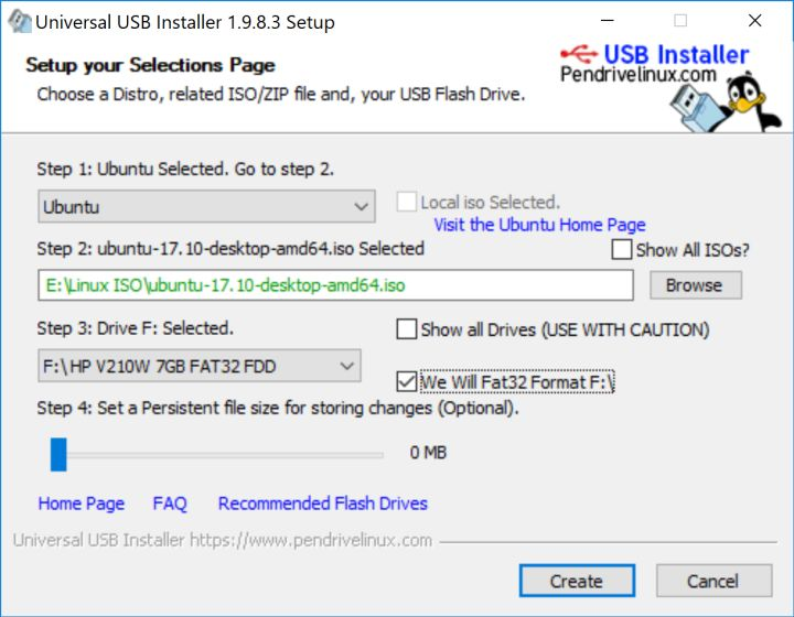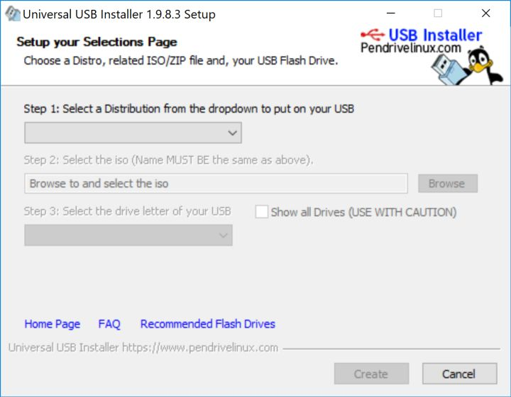 这个程序在使用上不复杂。首先连接 USB 盘,然后点击下载的 Universal USB Installer。启动后,你可以看到类似于我们的界面。