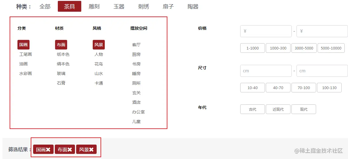 商品筛选之参数组选择组件