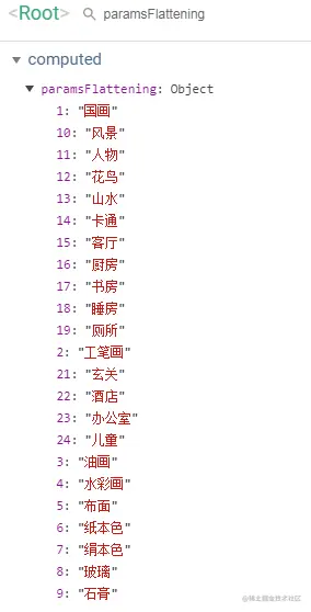 也就是把所有参数项,放到一个新的object中 (注意,我们这里的paramsFlattening是一个计算属性)