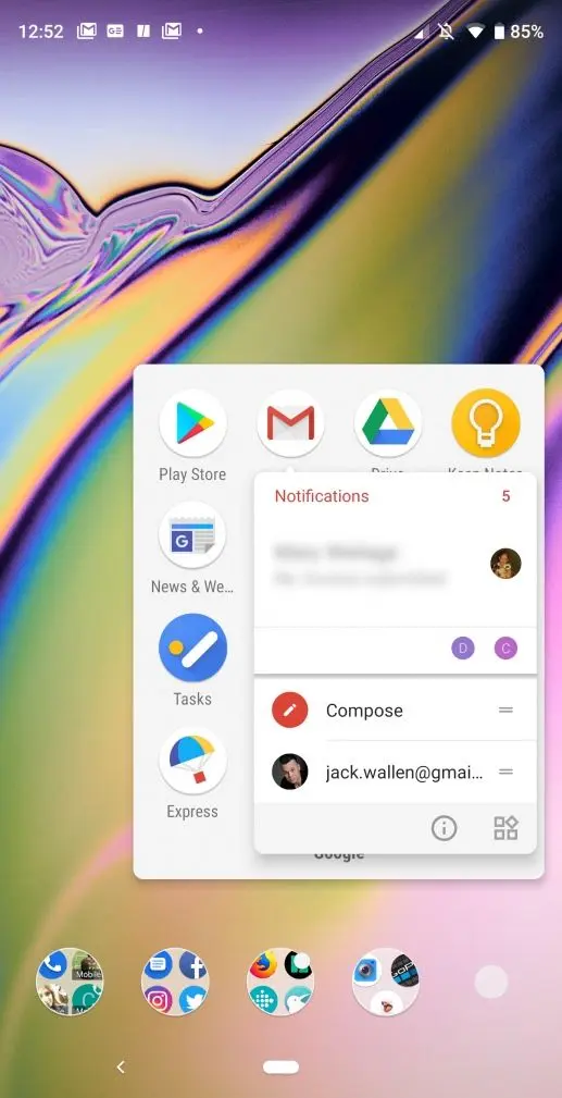 例如,长按 GMail 启动器,就可以执行回复最近的邮件、撰写新邮件等功能。在 Android 8.0 中,这个功能则以弹出动作列表的方式展现。在 Android 9.0 中,这个功能更契合 Google 的 材料设计(Material Design)风格(图 4)。