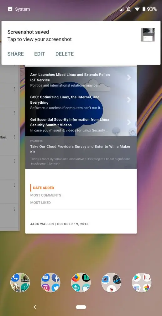 如果你想分享屏幕截图,只需要在截图后等待弹出菜单,点击分享(图 6),从标准的 Android 分享菜单中分享即可。