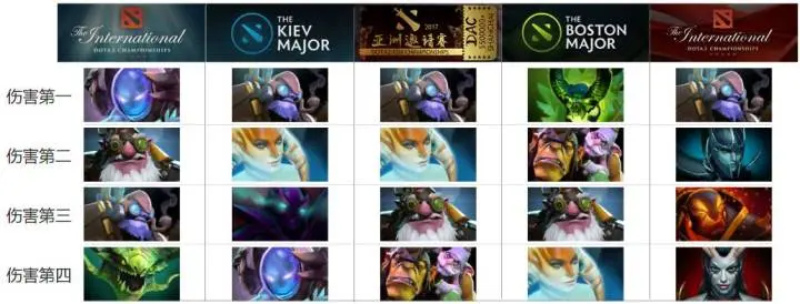 第一个问题涉及到伤害和比赛胜负的相关性,在找到更好的伤害指标作为参照之前,不敢妄下结论。我们先讨论第二个问题,众所周知,DOTA2是一款平衡性非常出色的游戏,冰蛙“锄强扶弱”的更新理念让DOTA2呈现出一代版本一代神的发展规律。上个版本的热门英雄,这个版本被砍一刀就抬不起头,伤害排行榜怎么可能被几名英雄长期霸占呢?