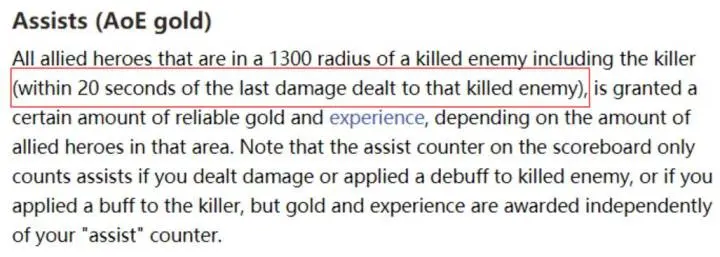 我之前喜欢把这个指标叫做“致死伤害”,但是引起了误会:很多读者把它理解成抢人头的最后一击伤害。非也!致命伤害计入击杀\助攻过程中的所有伤害。具体的计算规则可以参考DOTA2 WIKI的助攻机制,如果你懒,可以简单的理解为计入死亡前20秒受到的伤害。