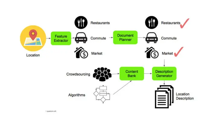 我一直致力于探索如何把已经相对成熟的机器学习算法应用到不同的领域中,因为工作在 Trulia,核心的关注也是在房地产领域。之前探索过图像识别算法的应用,开发了若干应用,也上线了一些,比如 What Makes a Photo Click: Selecting Hero Images with Deep Learning - Trulia's Blog。之后慢慢转向了文本的理解与生成,恰逢产品上有一些需求,于是开始主导探索搭建一个自然语言生成(Natural Language Generation)的系统。