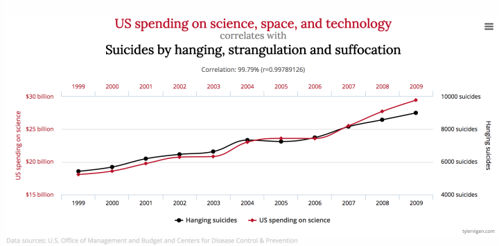 3、美国在科技及空间领域的投入和绞死及各种窒息的花样作死的人数,高度相关。