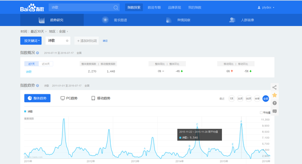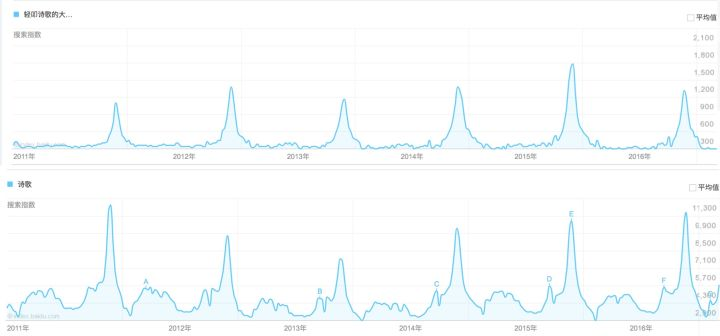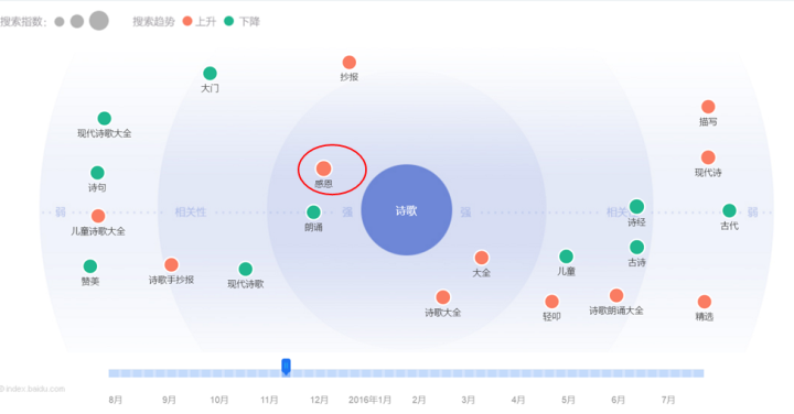 首先觉得提问者的发现很有意思的,大概在2016年8月。于是开始用百度指数做研究,“诗歌”的峰值出现在11月份的下旬或者第四周左右。