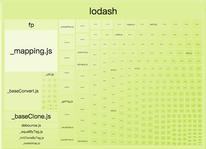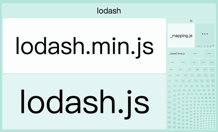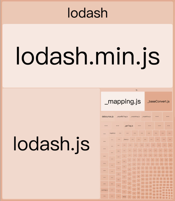 | 最优配置 | 40.21KB | 11.86KB |可以看到,在使用相关的优化后,可以得到不小的体积优势。同时从模块组成上,也能清晰地看到lodash.min已经消失了: