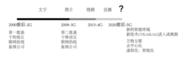 内容类产品的形态与技术进步和社会发展事实上是有相当大的关联,伴随着历次科技进步,我们接触信息的主要方式由文字变为图片,由图片变为视频,由视频又衍生出直播,期间演变周期越来越短,信息传播方式越来越高效、丰富、立体。
