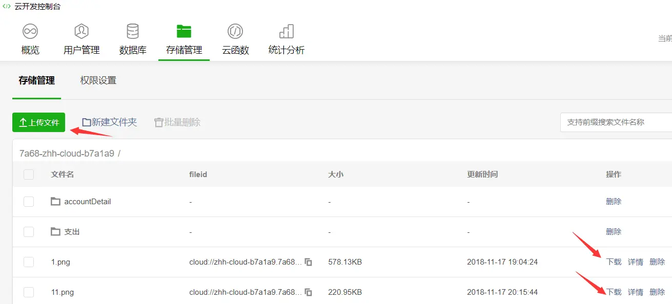 // 页面加载时先通过对应的accountKey, 得到回显信息 let { i, id, value, url, accountKey } = options photos.get({ success: res => { this.setData({ images: res.data, account: { id, value, url, i, accountKey }, isSelected: obj }) wx.hideLoading() } }) // 修改 save() { let { id } = this.data.account let { i, coverUrl, value } = this.data.isSelected // 若没修改 则为之前的value let inputValue = this.data.inputValue || value db.collection('accounts') .doc(id) .update({ data: { inputValue, coverUrl, i } }) } - 级联删除逻辑