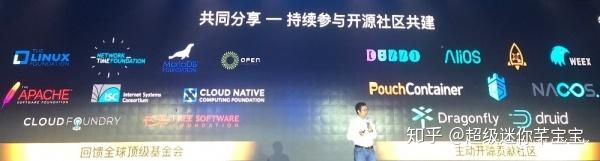 图:阿里与百万开发者共同定义云计算未来。毕玄说,“分享是一种快乐,我们将不断回馈开源社区”。目前,阿里巴巴加入了Linux、CNCF、Apahce等11家全球顶级基金会,累计开源的项目超过400个,涵盖中间件、开发框架、数据库和各种工具类软件。在GitHub 2017贡献排行榜上,阿里是唯一一家入围顶尖贡献名单的中国公司。