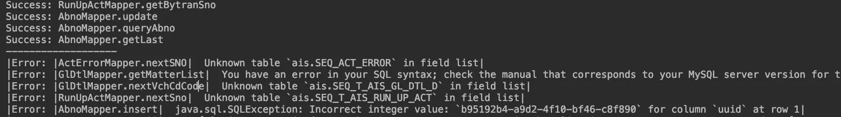 就会在控制台中打印出执行失败的Mapper以及其原因。如下图所示