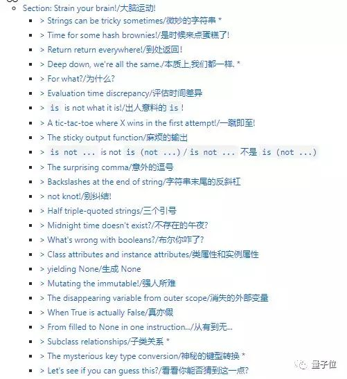 这个项目是《What the f*ck Python!》,专门介绍 Python 里面那些奇奇怪怪的语言坑。