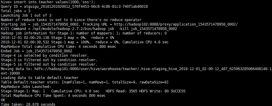 说明:(查看hive在hdfs中的结构) 数据库:在hdfs中表现为${hive.metastore.warehouse.dir}目录下一个文件夹 表:在hdfs中表现所属db目录下一个文件夹,文件夹中存放该表中的具体数据