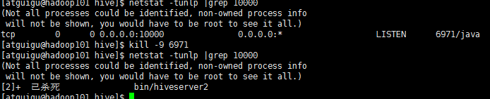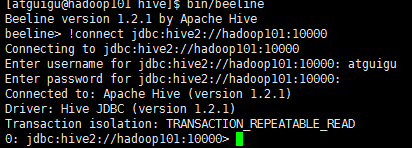 !connect jdbc:hive2://hadoop101:10000(回车)