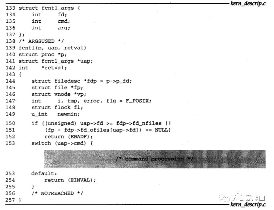 253~257 对于不能识别的命令,fcntl返回EINVAL。