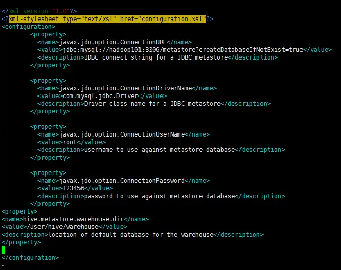修改default数据仓库原始位置(将hive-default.xml.template如下配置信息拷贝到hive-site.xml文件中)。