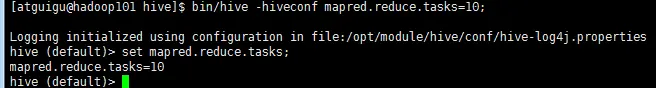 bin/hive -hiveconf mapred.reduce.tasks=10;