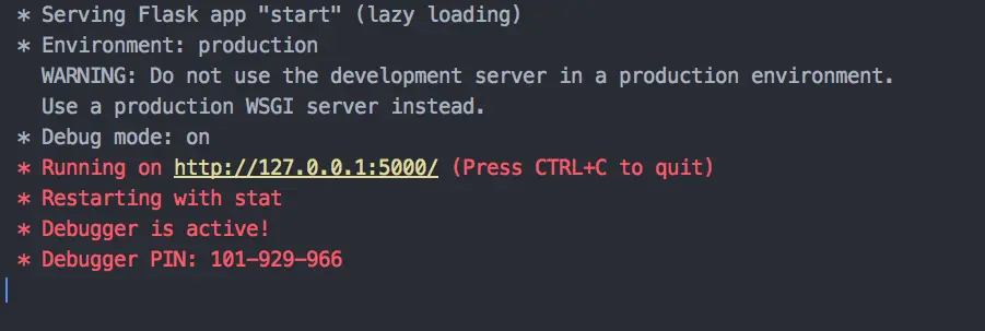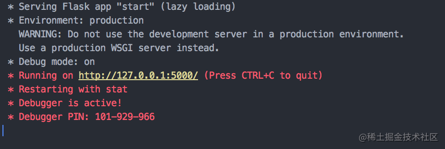 得到 Flask 已经启动的提示信息,接着我们可以点击链接,到浏览器上看一看输出了什么内容: