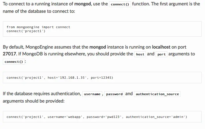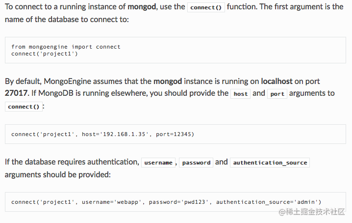 通过 MongoEngine 文档 Connecting to MongoDB 部分的介绍: