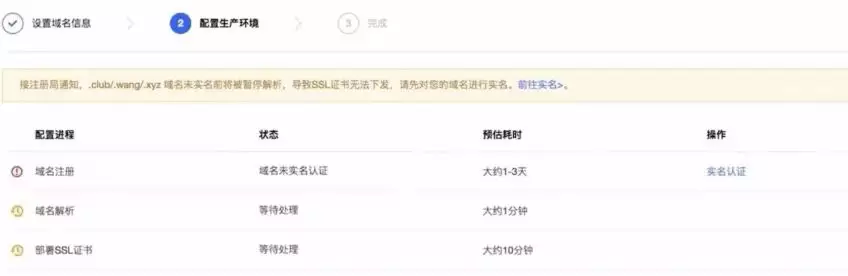 点击立即创建,付款之后,就开始配置生产环境的信息,这里就需要进行专门的实名认证了。