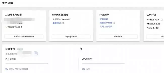 部署完成之后,生产环境上也像部署开通环境的一样的效果,只是多出来环境操作以及环境主机的信息。