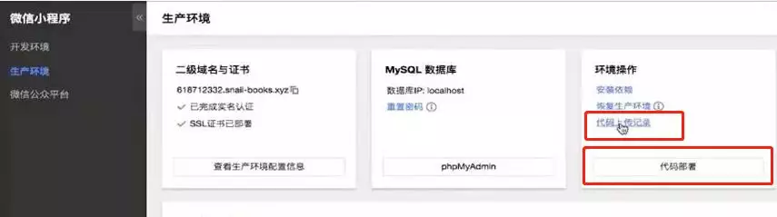 正式上线的部署需要点击代码部署,等待提示部署完毕,到这个时候呢,整个后台的部署也就完成了。