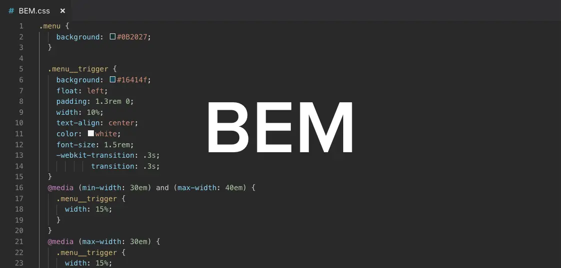 It stands for Block, Element and Modifier, and is a crazy complicated framework. Nicolas Gallagher simplified BEM’s naming convention, which was then made famous by Harry Roberts. IMO, the simplified version is already powerful enough for most needs. I personally never used the original one.