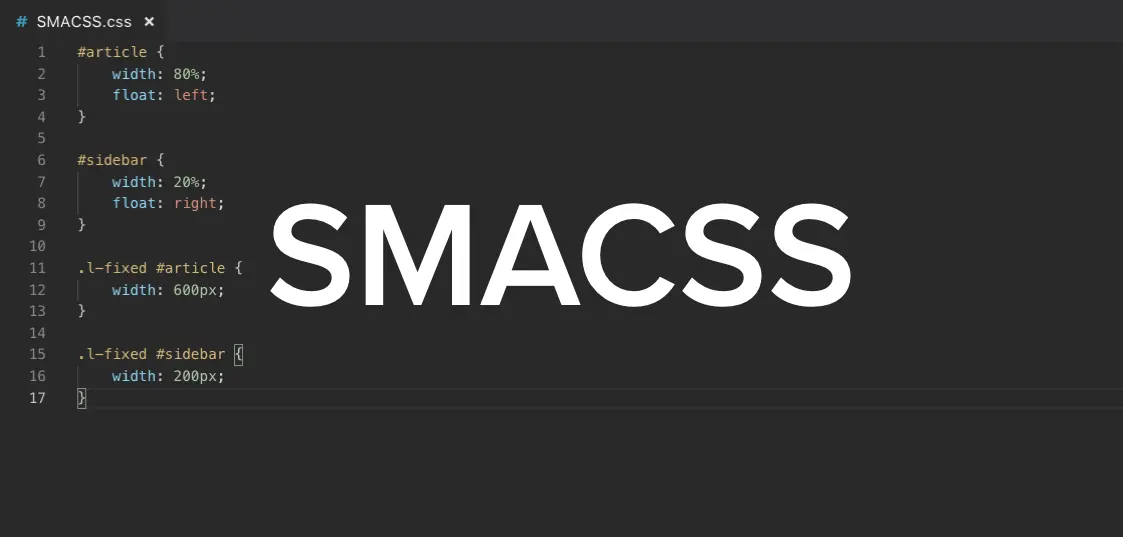 SMACSS is the acronym for Scalable and Modular Architecture for CSS, created by Jonathan Snook with large projects CSS codebases and teams in mind — he used to work at Yahoo and Spotify. Jonathan came up with several neat ideas and CSS file structure best practices, which he compiled in the SMACSS book.