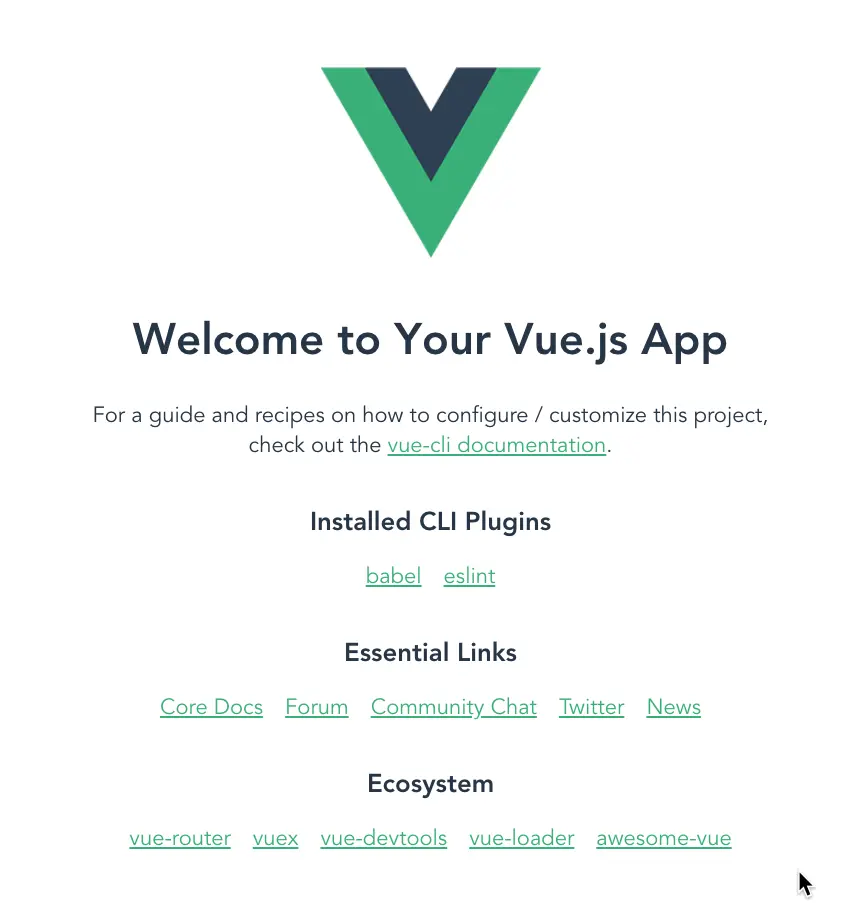 npm run serveNow open your browser to localhost:8080 and you should see the following: