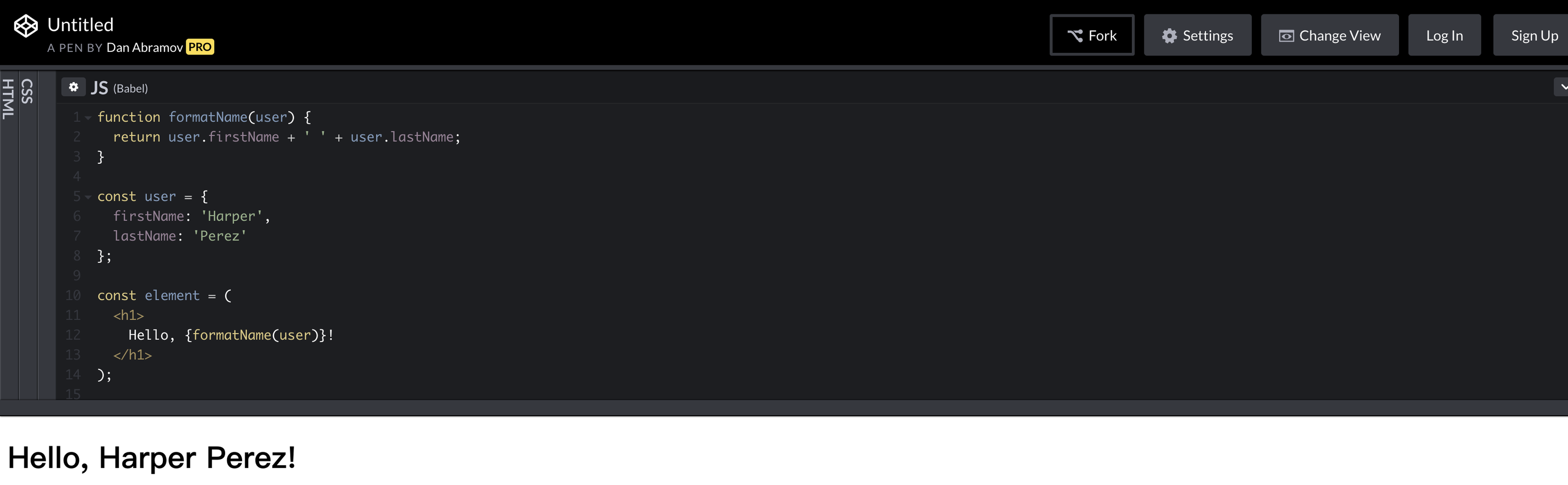 return <h1>Hello, {formatName(user)}!</h1>;