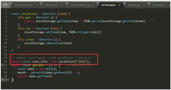 在本项目中,我单独将localStorage放在一个js里面,在有需要的时候可以调用,如图2。
