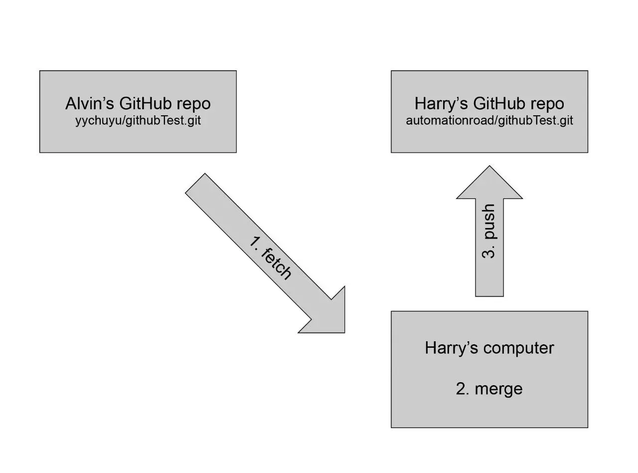 现在原作者项目已经发生了改变,那Harry账号下的githubTest如何与原作者Alvin的项目保持同步呢?Harry需要做以下三步操作: