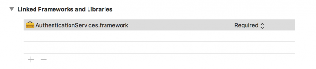 在页面底部,将AuthenticationServices.framework添加到Linked Frameworks and Libraries。 您需要AuthenticationServices来集成iOS密码自动填充功能。
